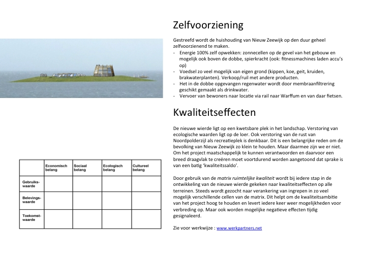 Het via een traag groei- en leerproces ontstaat een nieuwe buitendijkse terp in de Waddenzee. Dit idee is in 2014/15 uitgewerkt in het kader van de prijsvraag "Nieuwe wierde" van het Gronings Landschap.